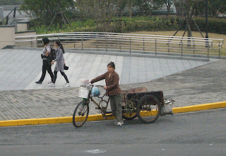 Even in Shanghai - with all its wealth and glitz - someone has to clean the street.